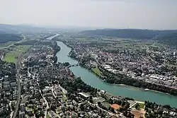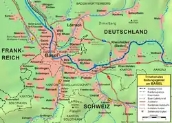 - ↑ Embora politicamente, Rheinfelden pertença ao cantão de Argóvia.