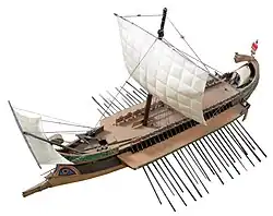 No século III a.C., Roma enfrentou um novo e formidável adversário: Cartago, uma rica e próspera cidade fenícia que pretendia dominar a região do mar Mediterrâneo. As duas cidades eram aliadas nos tempos de Pirro, que era uma ameaça para ambas, mas com a hegemonia de Roma na Itália continental e a talassocracia cartaginesa, essas cidades se tornaram as duas maiores potências no Mediterrâneo Ocidental e sua disputa pela região levou ao conflito. A Primeira Guerra Púnica começou em 264 a.C., quando a cidade de Messana pediu a ajuda de Cartago em seus conflitos com Hierão II de Siracusa. Após a intercessão cartaginesa, Messana pediu a Roma para expulsar os cartagineses. Roma entrou nessa guerra porque Siracusa e Messana estavam muito próximas das recém-conquistadas cidades gregas do sul da Itália e Cartago agora podia fazer uma ofensiva através do território romano; junto com isto, Roma poderia estender seu domínio sobre a Sicília.[30] Embora os romanos tivessem experiência em batalhas terrestres, para derrotar este novo inimigo, batalhas navais eram necessárias. Cartago era uma potência marítima e a falta de navios de experiência naval entre os romanos tornariam o caminho da vitória longo e difícil para a República Romana. Apesar disto, depois de mais de 20 anos de guerra, Roma derrotou Cartago e um tratado de paz foi assinado. Entre as razões para a Segunda Guerra Púnica[31] estavam as reparações de guerra subsequentes em que Cartago aceitou no final da Primeira Guerra Púnica.[32]