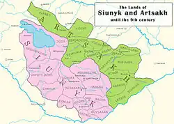 Dos séculos VII ao IX, caiu sob controle árabe.[8] Em 821, formou o Principado de Siunique e, por volta do ano 1000, foi proclamado o Reino de Artsaque, que foi um dos últimos reinos e principados armênios orientais medievais a manter sua autonomia após as invasões turcas dos séculos XI aos XIV.[9]