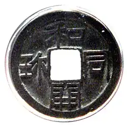 As moedas, redondas com um furo quadrado no centro, permaneceram em circulação até 958 d.C.[7] Estas foram as primeiras de uma série de moedas chamadas coletivamente de jūnizeni ou kōchō jūnisen (皇朝十二銭).[8]