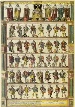 Além dos níveis mais altos do imperador, reis, príncipes-bispos e príncipes eleitores, os estados são representados em grupos de quatro. O número de quaternários era geralmente dez, em ordem decrescente de precedência: