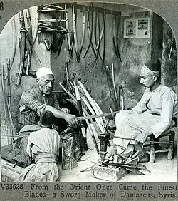 As lâminas de Damasco foram fabricadas no Oriente Médio a partir de lingotes de aço sérico importados da Índia,[1] bem como do Sri Lanka.[13] Os árabes introduziram o aço sérico em Damasco, onde a indústria de armas prosperou.[14] Do século III ao século XVII, lingotes de aço eram enviados para o Oriente Médio pela Índia.[15]