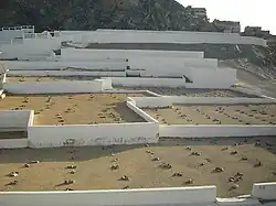 Quando Ali informou o Profeta sobre a morte de Abu Talibe, este chorou amargamente. Ele ordenou que Ali providenciasse seu banho, mortalha e cerimônias de sepultamento, e orou a Alá pela salvação da alma que partiu. [41] Seu corpo foi sepultado no cemitério em Meca, no sopé do Monte al-Ḥajūn. De acordo com várias evidências históricas, antes de sua destruição pelos wahabitas, sua tumba ficava em um santuário separado (buqʿa) e uma câmara funerária (ḍarīḥ). [14]