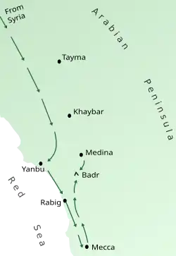 - ↑ Ver «Expedition of Abu Ubaidah ibn al Jarrah» na Wikipédia em inglês.