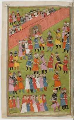 - ↑ Hazrat (حضرت; ḥaẓrat; santo) é um termo persa. No Irão precede-se com essa palavra o nome de todas as pessoas mortas que se veneram do ponto de vista religioso. O uso da palavra no texto realça o carácter hagiográfico da narração.