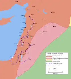 Pouco depois os muçulmanos tiveram notícia da concentração de 90 mil soldados bizantinos em Ajenadaim, a cerca de 24 km a sudoeste de Jerusalém. Sob o comando de Calide ibne Ualide, os muçulmanos derrotaram os bizantinos a 30 de julho de 634 na Batalha de Ajenadaim. Passada uma semana, Abu Ubaida e Calide marcharam em direção a Damasco. No caminho de Damasco infligiram outra derrota aos bizantinos na batalha de Yakusa, travada em meados de agosto de 634. O governador de Damasco enviou outro exército para deter os invasores muçulmanos, mas este também foi derrotado em 19 de agosto na Batalha de Marje Açafar.