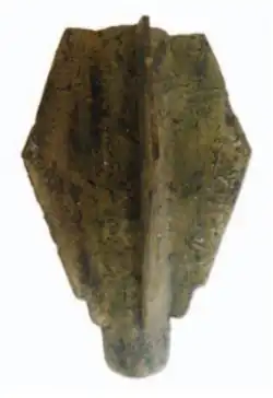 A acha é composta por três elementos: a «arma», «ponta» ou «cabeça», que se podia revestir de três formatos diferentes; a haste; e a contraponta ou «conto».[7]