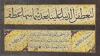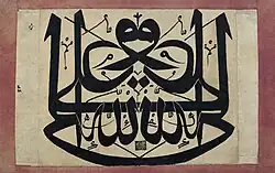 Selo caligráfico com o nome de Ali, em exibição na Basílica de Santa Sofia (Hagia Sophia), em Istambul. | |||||