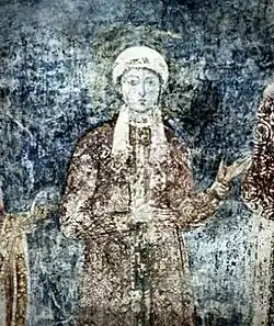 ![]() Representação da rainha num afresco da família de Jaroslau, presente na Catedral de Santa Sofia de Kiev. | |||||