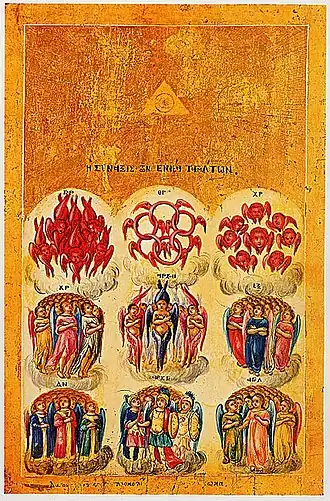 Segundo os teólogos cristãos medievais, os anjos estão organizados em várias ordens, ou "coros angelicais".[2][3]