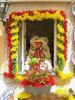 Um trono para o santo montado na janela de uma casa na sua festa em Lisboa