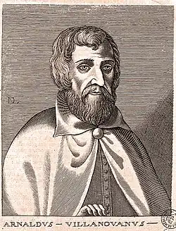 Arnaldo de Vilanova ou Arnau de Vilanova (em latim: Arnaldus Villanovanus; em francês: Arnaud del Villeneuve; em castelhano: Arnaldo del Villanueva; (Villeneuve-lès-Maguelone, perto de Montpellier?, Provença?, Languedoque? (França). Valência? Catalunha? (Espanha); 1238 (aprox.) – Gênova 1311) foi um médico e teólogo[1]. Não se tem como certo o exato local e data de seu nascimento e de sua nacionalidade, para alguns ele era francês, para outros era catalão, existindo várias hipóteses: nos territórios da Coroa de Aragão: Principado da Catalunha (Vilanova i la Geltrú, Senhorio de Montpellier); Reino de Valência (Valência), ou talvez em Provença ou Languedoque, recém-conquistado pelos franceses.