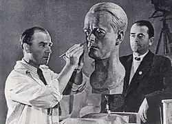 Arno Breker esculpindo um busto de Albert Speer, Ministro do armamento do Reich