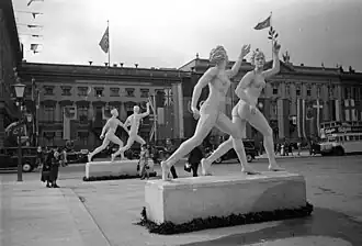Estátuas nuas dos corpos masculino e feminino ideais, instaladas nas ruas de Berlim, por ocasião dos jogos Olímpicos de Verão de 1936.[a]