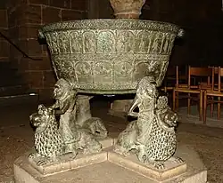 Pia batismal em bronze na Catedral de Bremen, Alemanha.