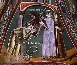 Cena da vida de Santo Eldrado, afresco na Abadia de Novalesa, Itália.