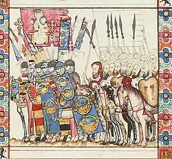 Na antiga Índia, as bandeiras tinham também uma importância elevada, sendo arvoradas em carros e em elefantes de guerra. Durante uma batalha, a bandeira era o primeiro alvo do inimigo, resultando a sua queda ou captura em desordem ou mesmo derrota do seu detentor. As bandeiras indianas apresentavam frequentemente um formato triangular, nas cores verde ou escarlate, contendo uma figura bordada a ouro e sendo franjadas também a ouro. Há notícia que, em 1542 a.C., foi usada uma bandeira branca como sinal de tréguas, o que parece evidenciar já o uso de bandeiras como meio de sinalização. A partir da Índia e da China, o uso de bandeiras espalhou-se para o que são hoje o Myanmar e a Tailândia, bem como para outras regiões do Sudeste Asiático.[2]