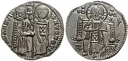 O basílico foi introduzido pouco antes de 1304 pelo imperador Andrônico II Paleólogo (r. 1282–1328), em imitação direta do ducado ou grosso veneziano de prata, principalmente pago a mercenários da Companhia Catalã.[2][3] A moeda bizantina acompanhou de perto a iconografia do modelo veneziano, com um Cristo sentado no anverso e a figuras de pé de Andrônico II e seu filho e co-imperador Miguel IX Paleólogo (r. 1294–1320) substituindo São Marcos e o doge de Veneza no reverso. A similaridade foi reforçada pelo nome da nova moeda: o ducado, a "moeda do doge", tornou-se o basílico, a "moeda do basileu", embora as fontes gregas contemporâneas geralmente chamem ambas de ducado.[4]