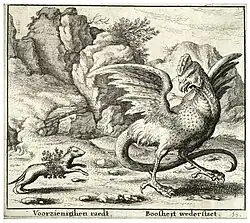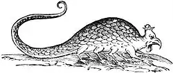 Ilustração de um basilisco em Serpentum, et draconum historiae libri duo (1640) de Ulisse Aldrovandi, p. 363.