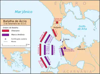 A Batalha de Áccio (ou Ácio – em latim, Actium) foi uma batalha naval travada entre a frota marítima de Otaviano, liderada por Marco Agripa, e as frotas combinadas de Marco Antônio e Cleópatra VII. A batalha ocorreu em 2 de setembro de 31 a.C. no Mar Jônico, perto da antiga colônia romana de Actium, Grécia, e foi o clímax de mais de uma década de rivalidade entre Otaviano e Antônio.[4]
