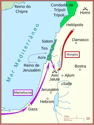 - ↑ «Battle of Ayn Jalut | Summary». Encyclopedia Britannica (em inglês). Consultado em 18 de outubro de 2020
