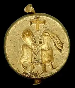 Um sinete de ouro, atualmente localizado no Museu do Castelo de Norwich, foi descoberto em 1999 por um detector de metais em Postwick, no condado de Norfolk, na Ânglia Oriental, na Inglaterra. Em um dos lados há o rosto de uma mulher com a inscrição BALDAHILDIS, em língua franca. Já o outro lado retrata um casal nu, homem e mulher, se abraçando sob uma cruz.[4]