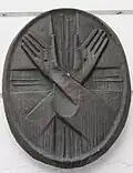 Escultura alegórica do Papa Alexandre III e de S. Bernardo de Claraval coroando D. Afonso Henriques, no Mosteiro de Alcobaça.