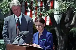 Bill Clinton foi empossado como o 42.º Presidente dos Estados Unidos a 20 de janeiro de 1993. Logo após assumir, ele assinou a "Lei de Licença Médica e Familiar de 1993", em 5 de fevereiro, que fazia com que as empresas pudessem dar uma licença não paga para mulheres grávidas ou pessoas com problemas médicos. Essa lei teve apoio bipartidário[78] e se provou muito popular junto ao povo.[79] Clinton também assinou ordens executivas para desfazer todas as restrições ao aborto feitas durante a era Reagan-Bush. O presidente já havia se declarado em favor do direito ao aborto, afirmando que deveria ser "legal e raro".[80]