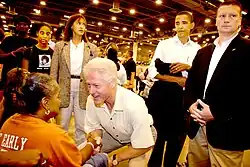 - ↑ Rutenberg, Jim; Zernike, Kate (20 de setembro de 2010). «Bill Clinton Stumps for Obama». The New York Times. Consultado em 17 de maio de 2015