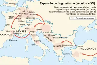 Da Bósnia, a influência do bogomilismo estendeu-se à Itália (Piemonte). Os húngaros realizaram muitas cruzadas contra os hereges na Bósnia, mas no final do século XV, a conquista do país pelos turcos impossibilitou a ocorrência dessas cruzadas. Pouco ou nenhum vestígio do bogomilismo existe na Bósnia. O ritual escrito por Radoslav em língua eslava, e publicado no vol. XV do Starine of the South Slavonic Academy at Agram, mostra grande semelhança com o ritual dos cátaros publicado por Cunitz em 1853.[10][11]