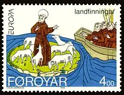 Selo feroês mostrando São Brandão descobrindo as Ilhas Feroe
