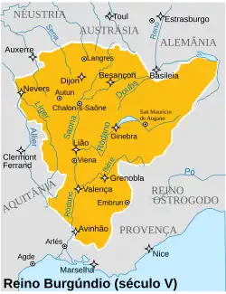 Os burgúndios, aparentemente confiantes no seu poder crescente, negociaram em 456 uma expansão territorial e um arranjo de divisão de forças com os senadores romanos locais. (Mário de Avenches)