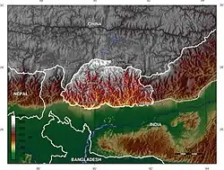 Mapa topográfico do Butão
