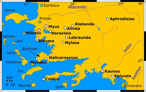 - «History and Culture of Ancient Caria» (em inglês). Livius.org. Consultado em 30 de dezembro de 2013