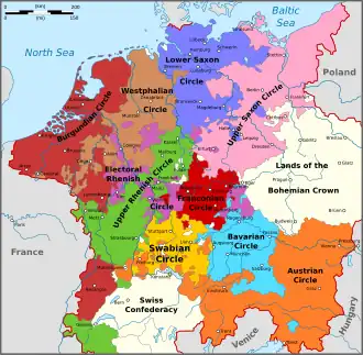 Originalmente, os territórios governados pela Casa de Habsburgo e pelos Eleitores permaneceram fora dos círculos. Em 1512, a Dieta em Tréveris e Colônia organizou estas terras em mais quatro círculos: