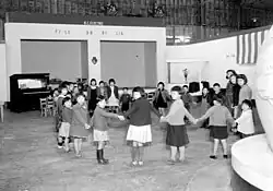 ![]() Judocas nipo-canadenses celebrando o kagami biraki no ginásio do Campo de Internamento de Tashme, Colúmbia Britânica, 1945. O homem de terno ao centro parece ser Shigetaka Sasaki. | |