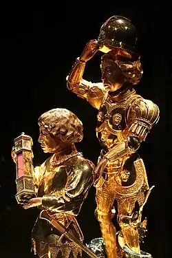 ![]() Carlos o Temerário como jovem adulto, cerca de 1460, usando o colar da Ordem do Tosão de Ouro. Pintado por Rogier van der Weyden. | |||||