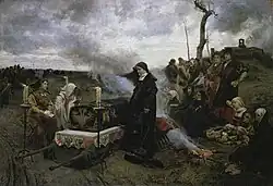 Dona Joana, a Louca por Francisco Pradilla Ortiz. Joana se tornou herdeira dos reinos de Castela e Aragão após a morte dos seus dois irmãos mais velhos, João e Isabel. Após a morte de seu infiel esposo, Filipe, o Belo, Joana não se separou do caixão do falecido. Apesar de sua suposta loucura ser questionada atualmente, Joana foi presa em Tordesilhas por seu pai, Fernando de Aragão em 1509 e mantida lá até sua morte em 1555.