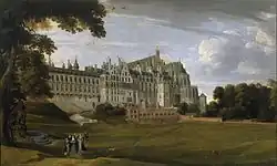 O Palácio de Coudenberg em uma pintura do século XVII. Bruxelas serviu como a principal receita da corte imperial de Carlos V nos Países Baixos.[27][28]