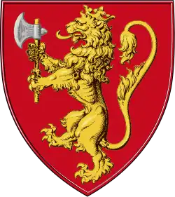 Armas da filho da filha do rei Haakon V Magnusson, o rei Haakon VI Magnusson, que era da Casa de Bjälbo. Seu brasão de armas inclui as armas de Sverre e as armas de Bjälbo.