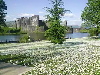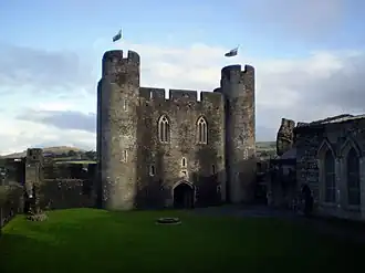 O Castelo de Caerphilly é o maior castelo do País de Gales e o segundo maior na Grã-Bretanha depois do Castelo de Windsor. Construído principalmente entre 1268 e 1271, é um exemplo inicial de castelo concêntrico.