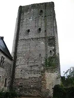 Ao filho de Godofedo I, Fulque III de Anjou, é atribuída a construção da torre de menagem, cujo início de edificação aponta, segundo a opinião de investigadores nesta matéria, para o período entre 1013 e 1035.[6] Fulque III estabeleceu durante o seu reinado como Conde de Anjou (987-1040) uma densa rede de fortificações, elevadas a intervalos de cerca de 30 quilómetros por todo o condado e que deviam garantir as pretensões de poder da sua Casa. A torre de menagem em Loches foi fortificada por este motivo.