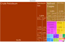 Principais produtos de exportação do Cazaquistão em 2019 (em inglês)