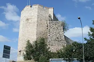 ![]() Detalhe das Muralhas de Constantinopla mostrando uma torre e uma seção transversal do muro. | |||