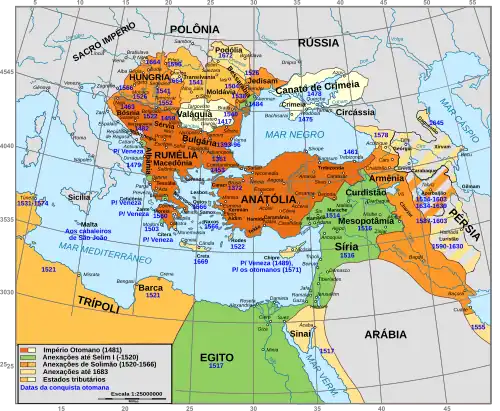 - ↑ Já em 1480 os otomanos entraram em Otranto, local que mantiveram por 8 meses."Relato de la Batalla de Otranto, 27 de Julio de 1480"