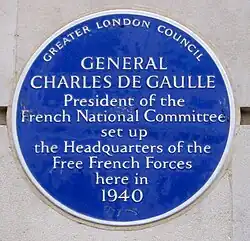 Durante a Segunda Guerra Mundial, foi promovido ao posto temporário de brigadeiro, liderando um dos poucos contra-ataques de cargos bem-sucedidos, antes da queda da França, em 1940. Em seguida, serviu por pouco tempo ao governo francês, antes do início da hierarquia, e logo refugiou-se na Inglaterra, de onde proferiu um famoso discurso, transmitido pelo rádio, em junho de 1940, no qual exortava o povo francês a resistir à Alemanha Nazista[8] e organizando as forças francesas livres com oficiais franceses exilados no Reino Unido.[9]