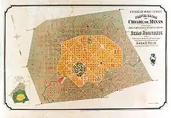 Em 1889, o Brasil se tornou uma república e foi acordado que uma nova capital mineira, em sintonia com o moderno e próspero momento que o estado de Minas Gerais passava, teria de ser definida. Em 1893, devido às condições climáticas e topográficas, a localidade de Curral del Rei foi selecionada pelo então governador do estado, Afonso Pena, como o local para o novo centro econômico, cultural e político do estado, sob o novo nome de Cidade de Minas (atual Belo Horizonte). Aarão Reis, um urbanista do estado do Pará, foi então definido para projetar a terceira cidade planejada do Brasil (após Teresina, capital do Piauí, e Aracaju, capital de Sergipe)[1][2] e, em seguida, a capital foi finalmente inaugurada em 1897, apesar de muitas construções estarem inacabadas no prazo para a sua conclusão. A habitação da cidade foi subsidiada pelo governo local, através da concessão de terrenos baldios livres e financiamento para a construção de casas. Uma característica interessante do plano das ruas do centro da antiga Reis para a atual Belo Horizonte foi a inclusão de uma matriz simétrica de ruas perpendiculares e diagonais em homenagem aos estados brasileiros e aos povos indígenas brasileiros.[3][4]