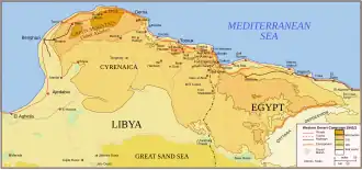 - ↑ "Cyrenaica and the Greeks" from The Library of Congress Country Studies: Libya. 2001. . Accessed March 27, 2011.