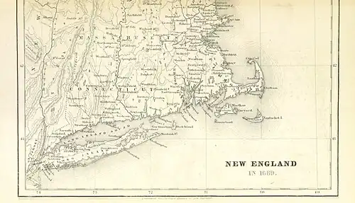 Mapa das colônias da Nova Inglaterra publicado em 1858.