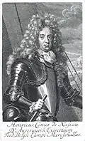 | Henrique | ![]() | 28 de agosto de 1641 | 1662-1701 | 18 de abril de 1701 | Nassau-Dillenburg | Doroteia Isabel de Brieg 13 de outubro de 1663 dezasseis filhos | Neto de Luís Henrique, como filho de Jorge Luís de Nassau-Dillenburg, sucedeu ao avô. |